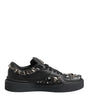 Dolce & Gabbana Black Leather Studded Low Top Sneakers Shoes