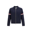 Zip Sweatshirt by Thom Browne features a ribbed collar and a double-slider front zipper closure. Ribbed cuffs and hem ensure a comfortable fit, while side welt pockets combine practicality and style. Completing the design is the iconic colorful band on the sleeves, a hallmark of the brand.