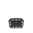 The Nellcôte Shoulder Bag by Valentino Garavani is crafted from grained calfskin with a profile decorated with ball studs and rivets, giving it a bold character. Featuring an adjustable leather strap, it can be worn on the shoulder or cross-body. Palladium-finish metal details, a small VLogo Signature metal detail, and a zip closure complete the design, while the suede lining and internal card pocket add practicality and elegance.