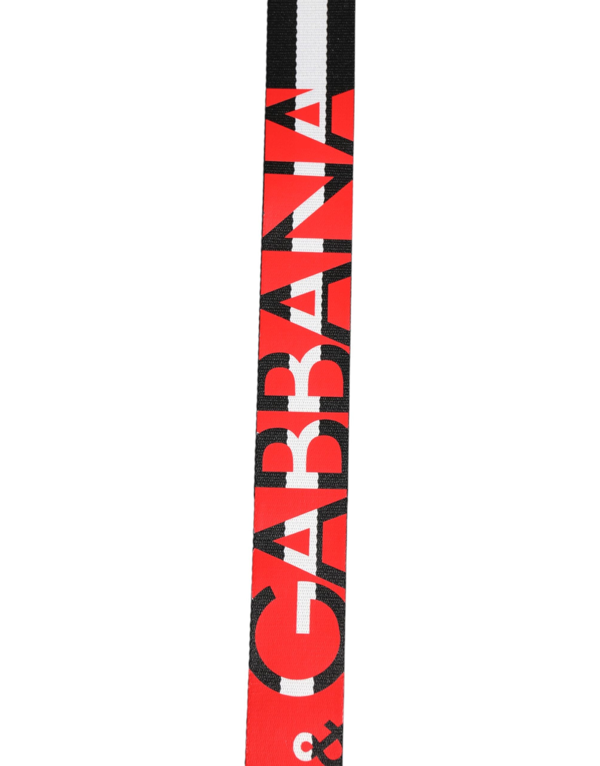 Dolce & Gabbana Black White Striped Logo Metal Buckle Belt
