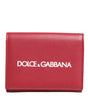 Dolce & Gabbana Red Leather Bold Logo Print Trifold Card Holder Wallet