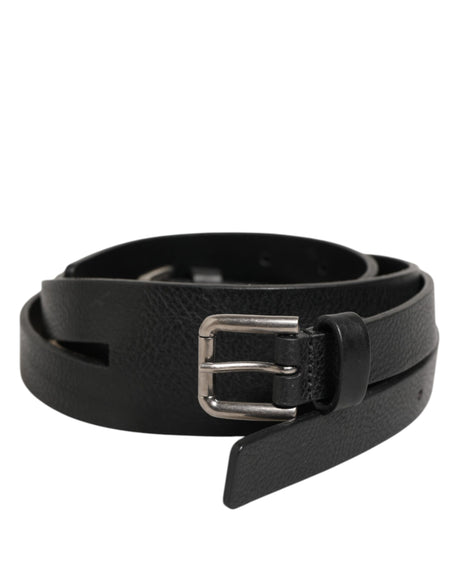 Dolce & Gabbana Black Textured Leather Silver Metal Buckle Men Belt