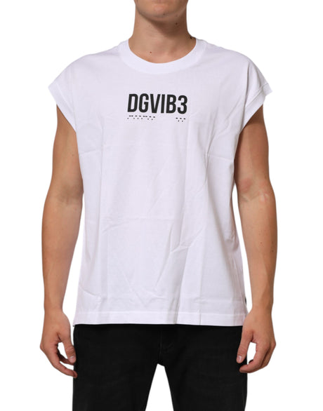Dolce & Gabbana White Cotton Sleeveless Printed Tank T-shirt