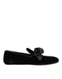 Dolce & Gabbana Black Suede Cotton Rose Slip On Loafers Shoes