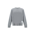 Cotton Sweatshirt by Thom Browne, crew neck, ribbed cuffs with buttons, vertical band detail with iconic brand color stripes on back panel, side slits with buttons, ribbed hem, iconic brand logo patch applied to front, regular fit.