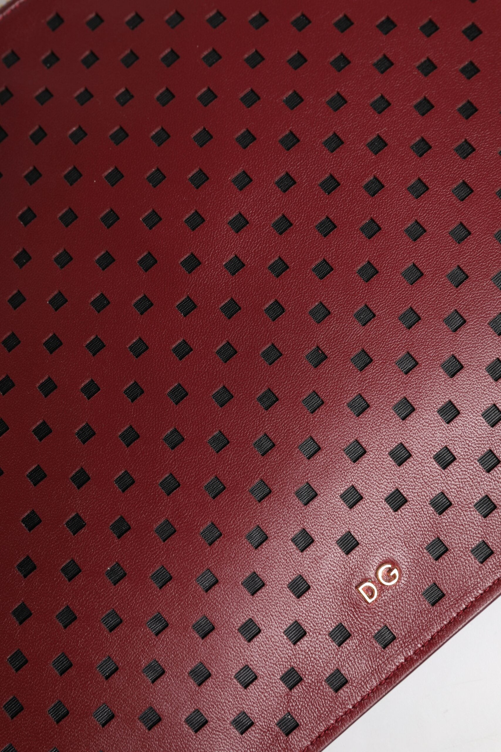 Dolce & Gabbana Burgundy Black Logo Embellished Men Zip Flat Pouch Bag