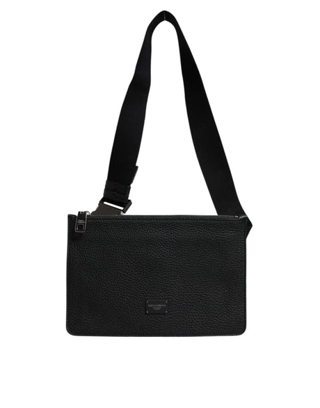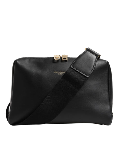Dolce & Gabbana Black Leather Logo Embossed Waist Fanny Pack Bag