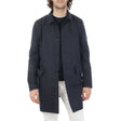 Men’s raincoat in cotton blend, front button fastening, side flap pockets, shirt collar with checked undercollar, model is 182 cm tall and wears size 48