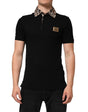 Dolce & Gabbana Black Cotton Leopard Collar Polo T-shirt