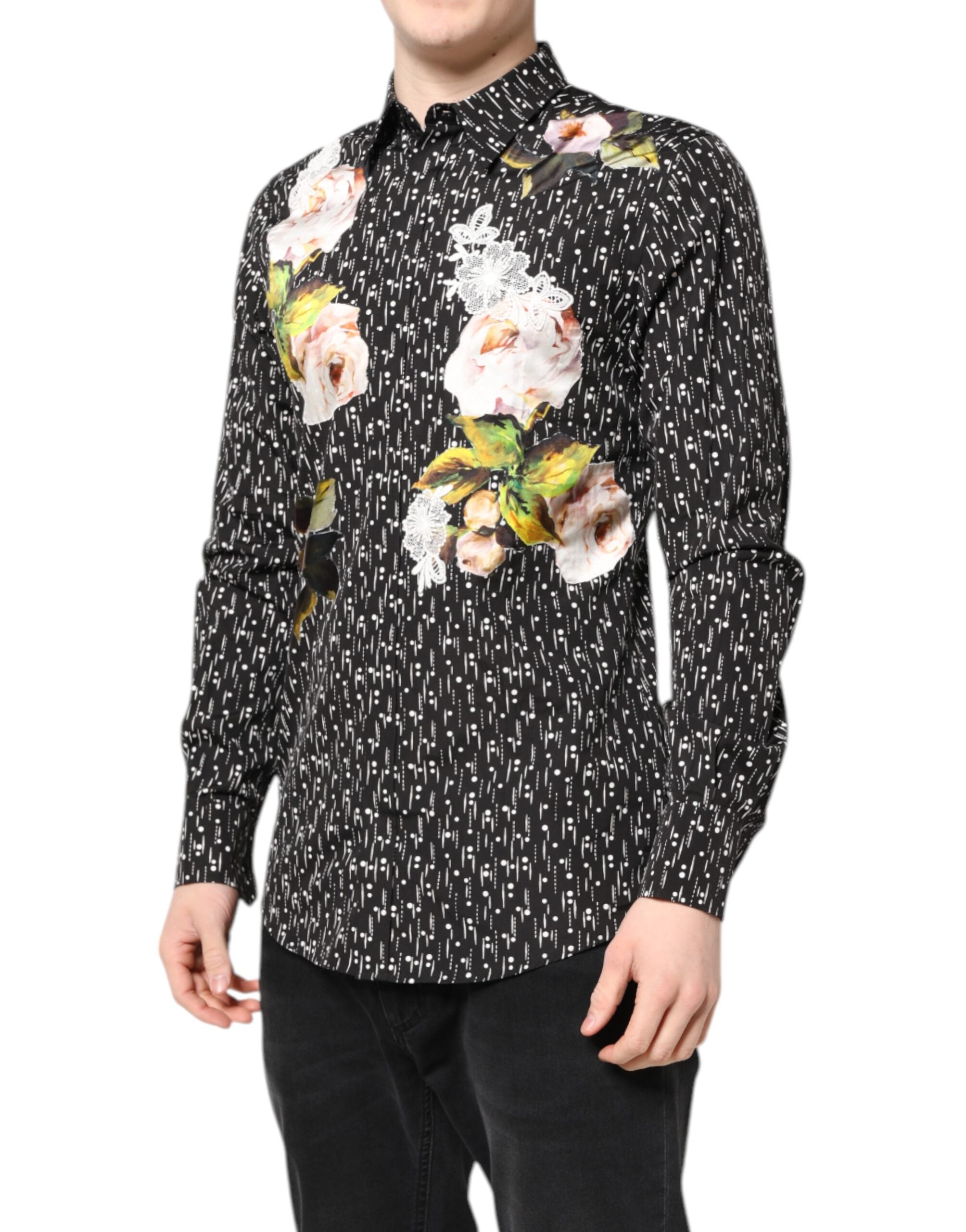 Dolce & Gabbana Black GOLD Floral Embroidery Formal Shirt
