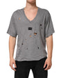 Dolce & Gabbana Gray Cotton Tattered Logo Patch Men T-shirt