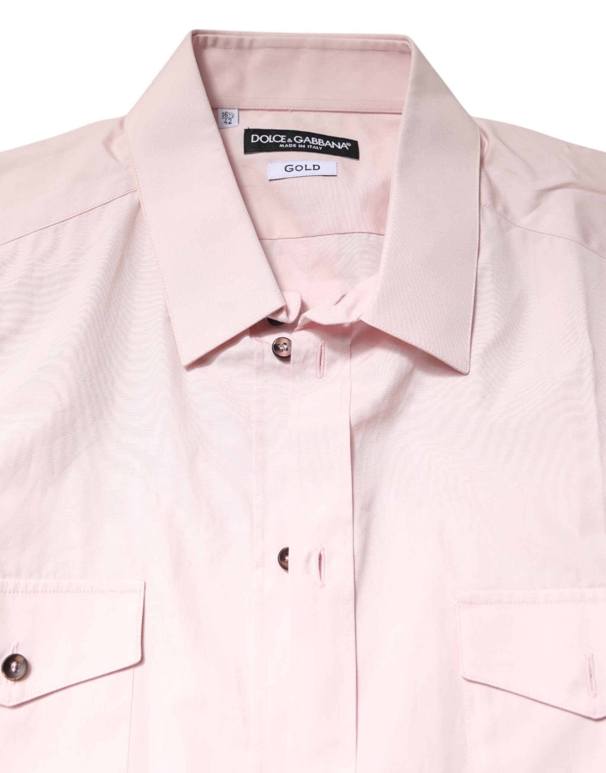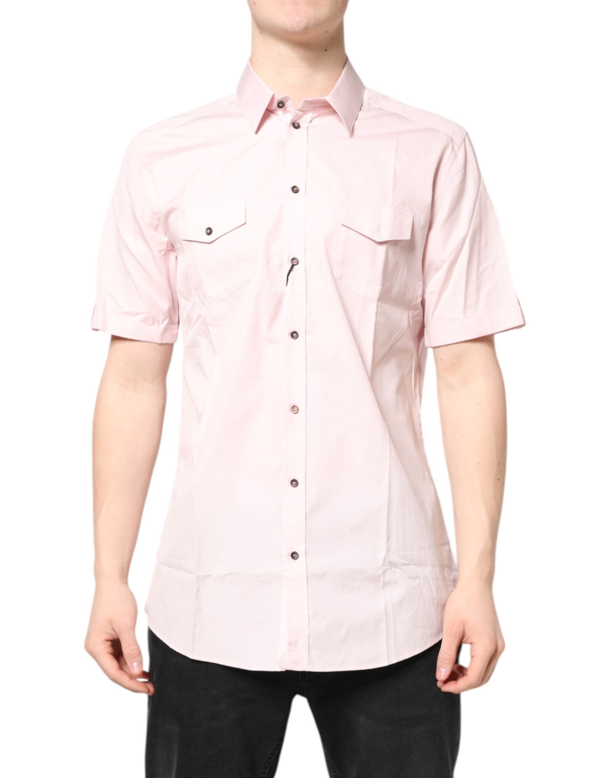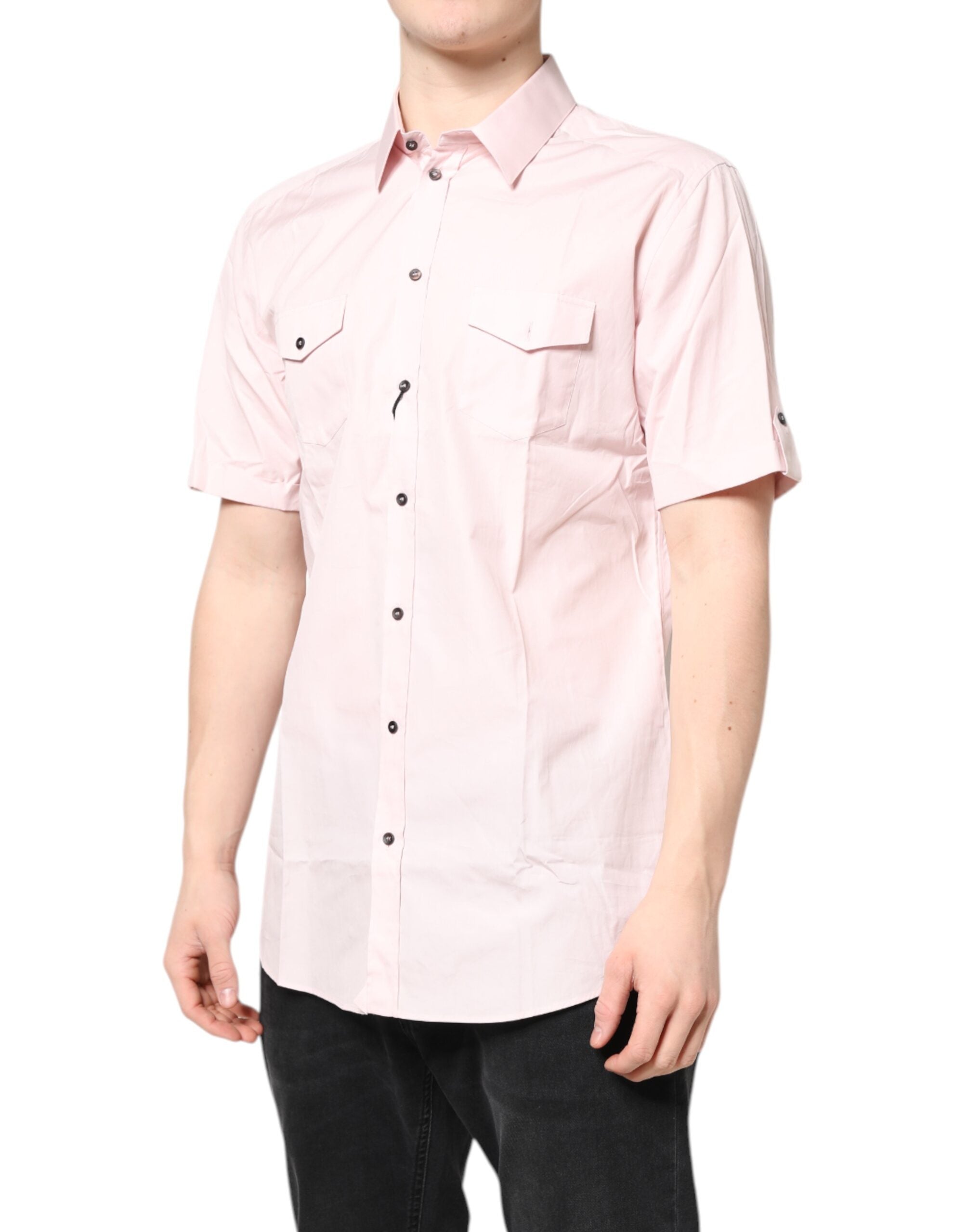 Dolce & Gabbana Pink Short Sleeves Cotton GOLD Casual Shirt
