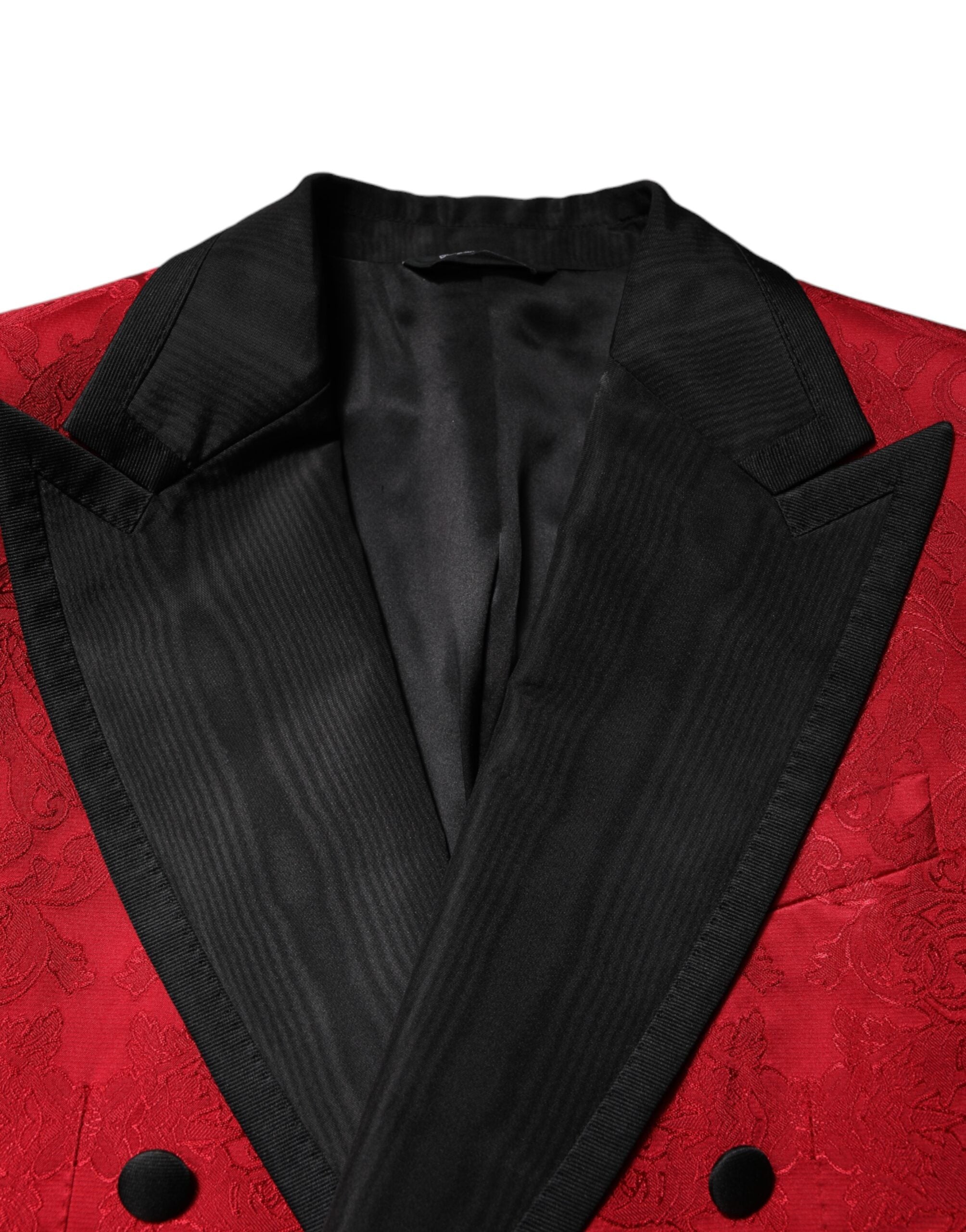 Dolce & Gabbana Red Floral Jacquard Double Breasted 2 Pc Suit