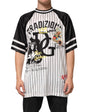 Gorgeous brand new, 100% Authentic Dolce & Gabbana T-shirt “Tradizione” oversized T-shirt from the men’s collection. Designed in a baseball jersey-inspired silhouette, this shirt features a striking pinstripe pattern contrasted by black raglan sleeves with sporty stripes. The front is decorated with vibrant, artistic graffiti-style graphics including the signature DG logo, religious and romantic imagery, and expressive text such as “Tradizione”, “Mon Amour”, “Amore”, and “God the”.
