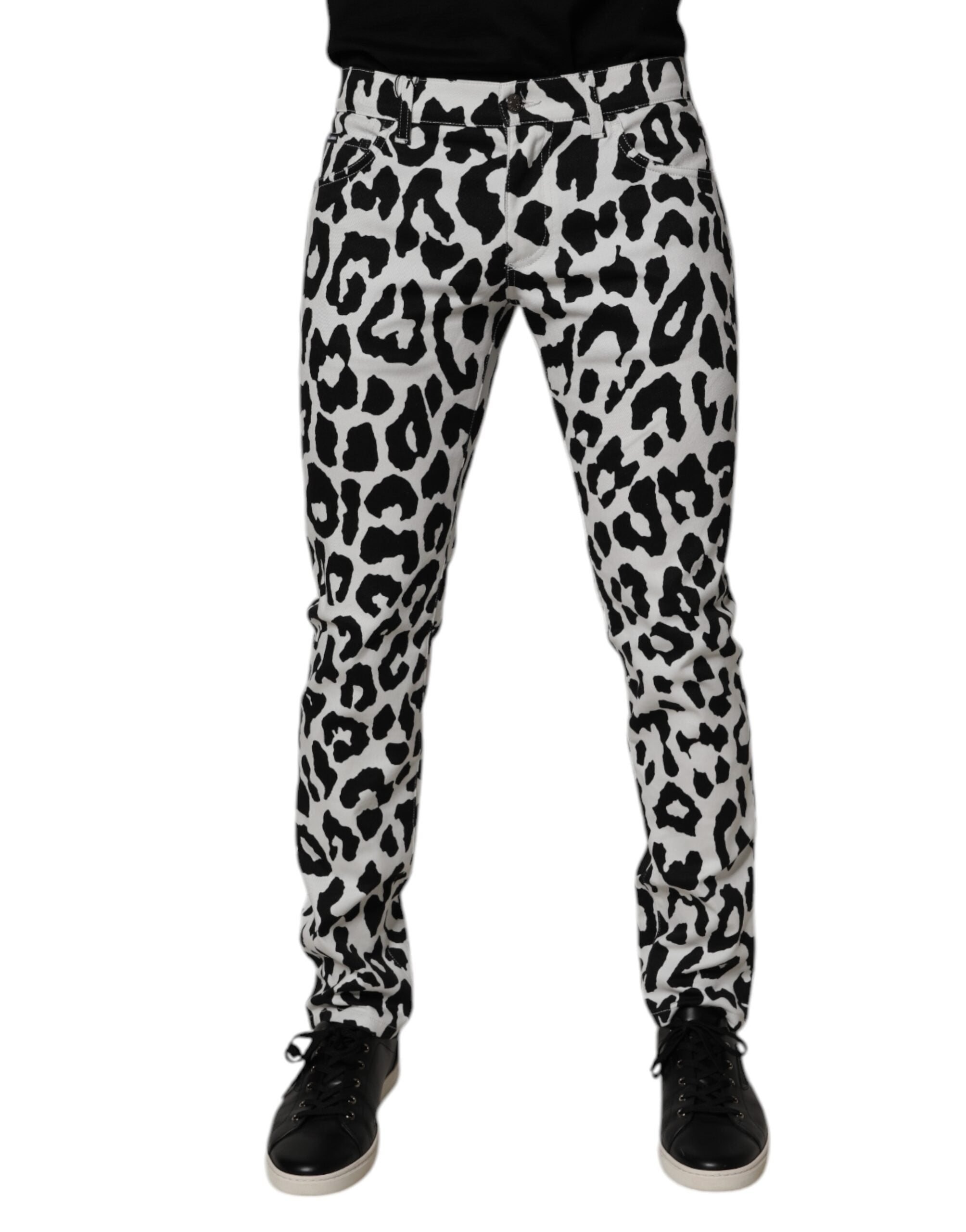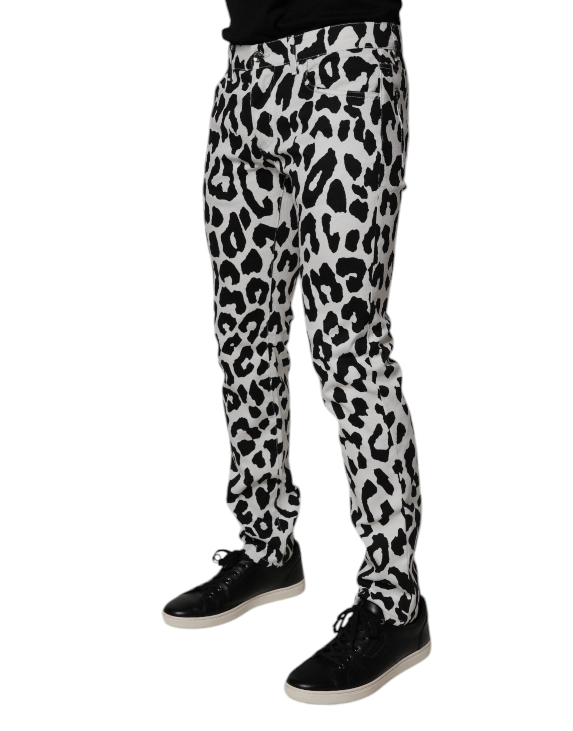 Dolce & Gabbana White Leopard Cotton Skinny Denim Jeans