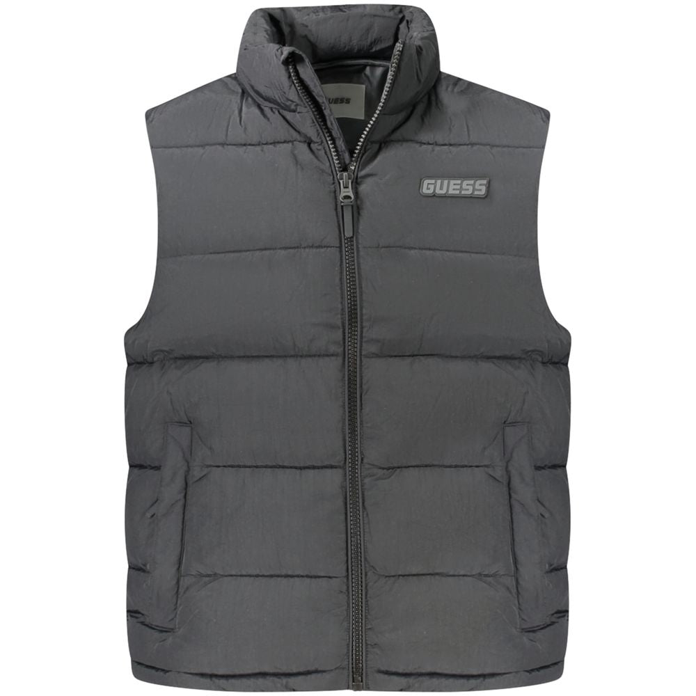 Exude modern edge with Guess Jeans’ sleek, sleeveless black jacket, perfect for the fashion-forward individual. Boasting a water-resistant design that fuses practicality with style, it features two handy external pockets and a secure internal pocket. Finished with a chic zipper closure and the iconic Guess logo, it’s a piece that’s as functional as it is stylish. Make a statement while staying in vogue with this must-have addition to your wardrobe.