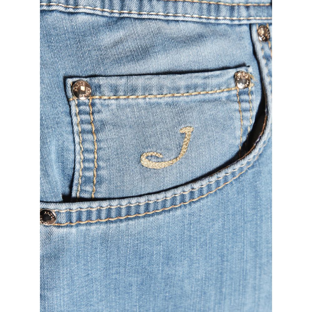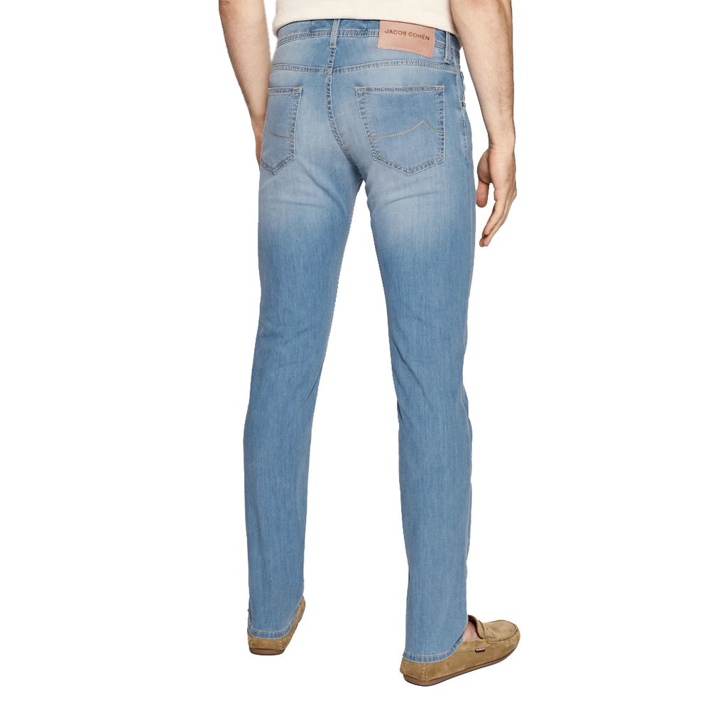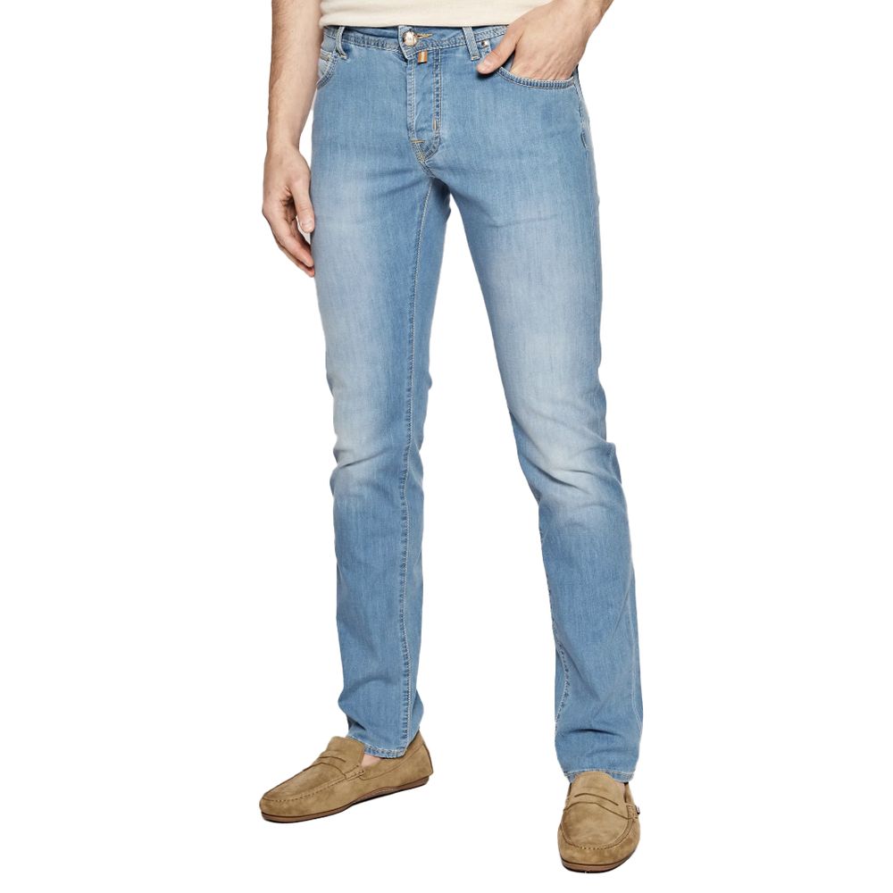 Jacob Cohën Nick slim fit jeans in slightly stretchy faded cotton, five pockets, button fastening, gold-tone stitching details and silver-tone buttons, beige pony skin logo patch