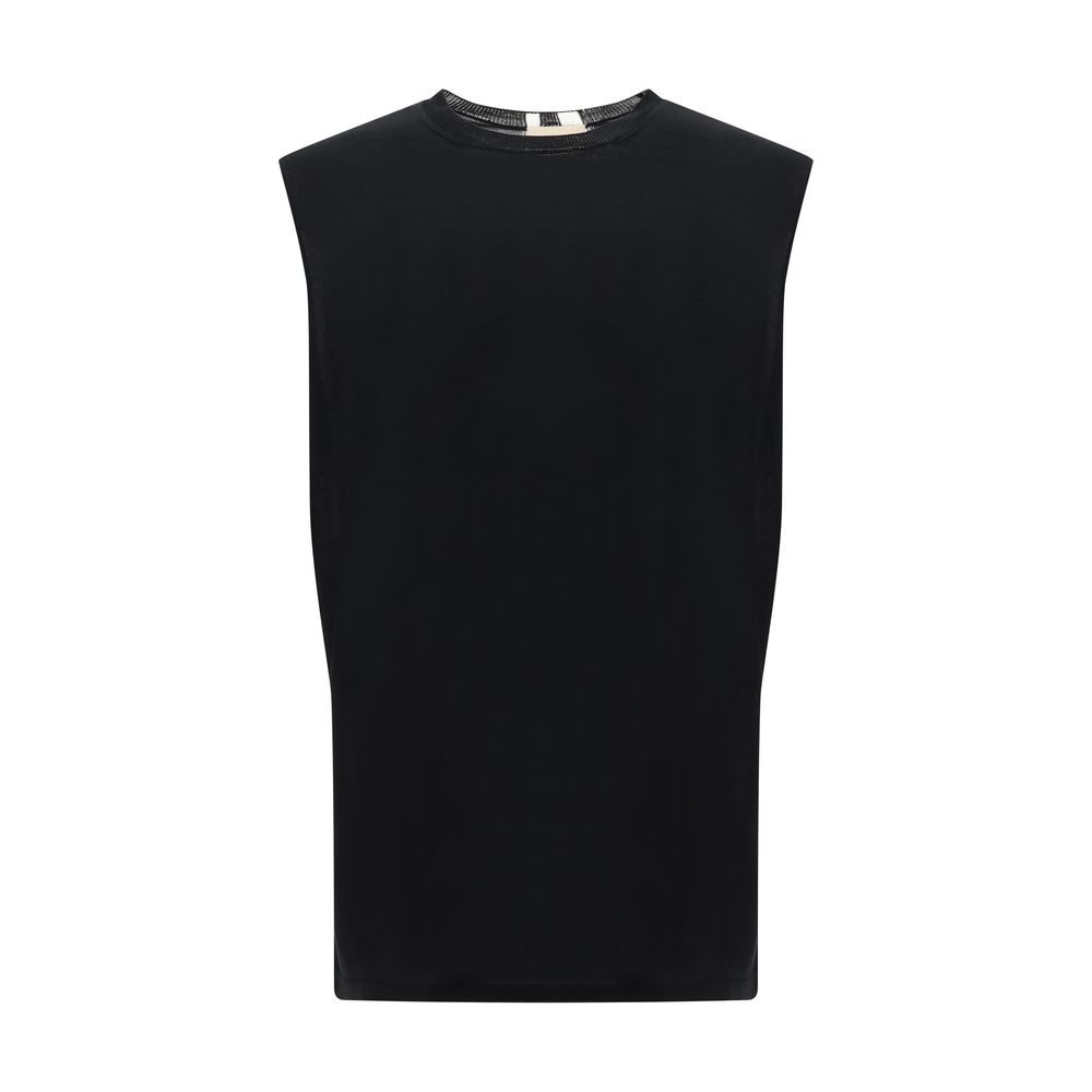 Cotton Top by Mordecai, sleeveless design, ribbed crew neck, front patch welt pocket, monochrome pattern, regular fit.