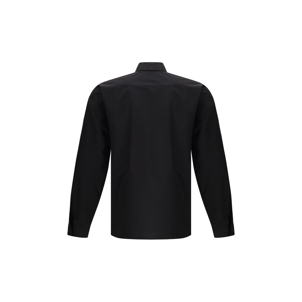 Cotton Shirt by Prada featuring a classic collar, a front zipper closure, a front zipper pocket, a patch with the brand’s iconic triangular froma, a monochrome pattern, and a regular fit.