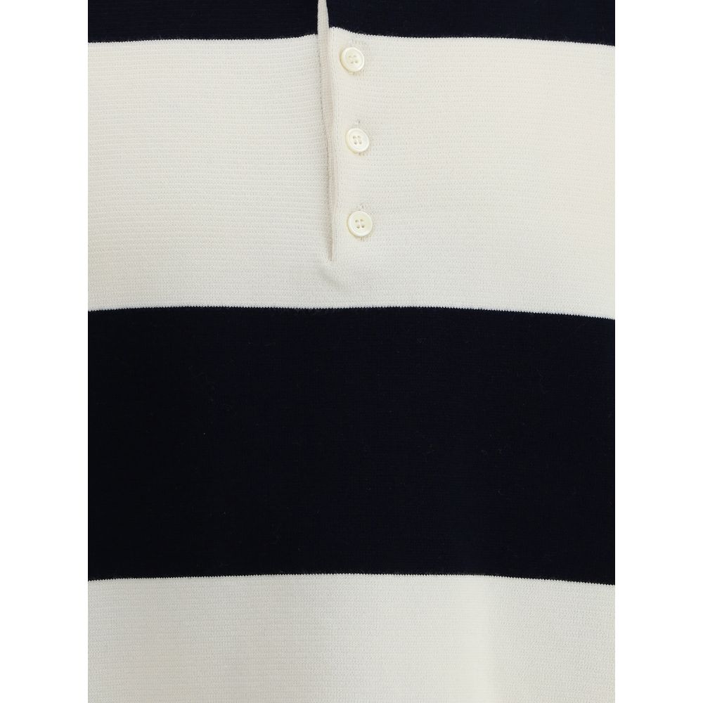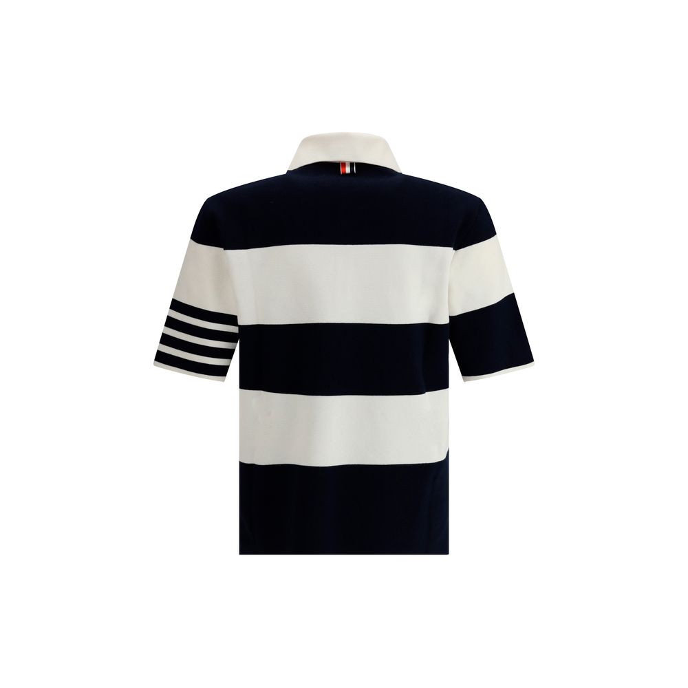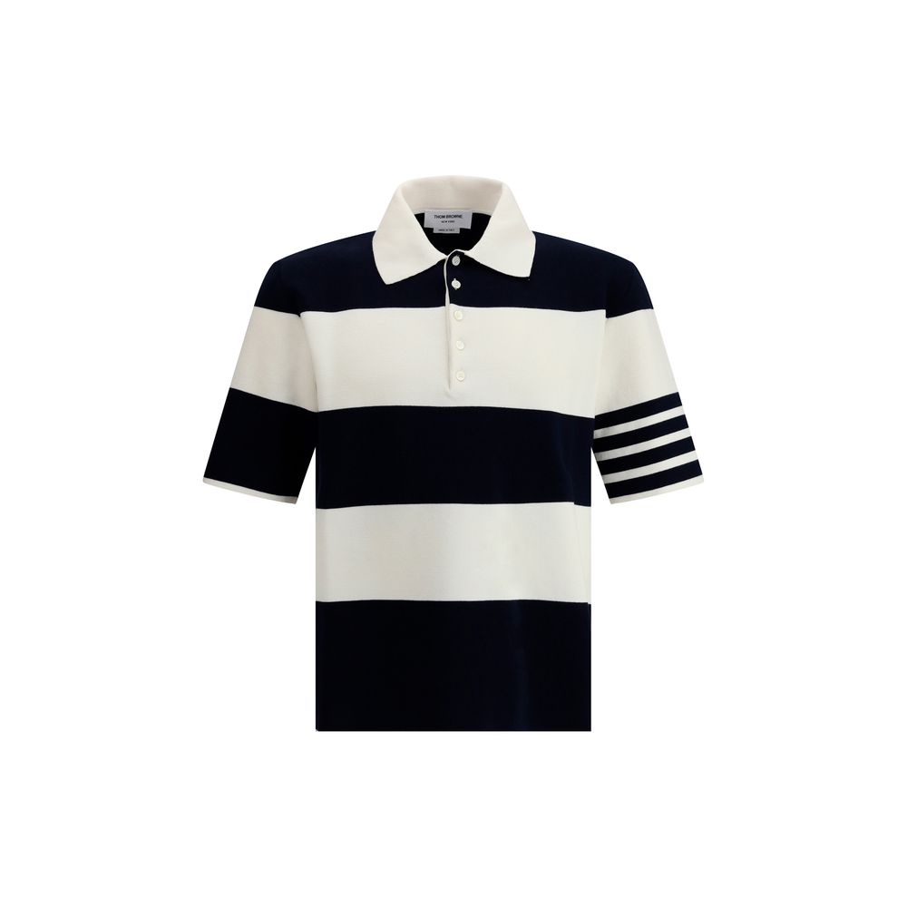 Thom Browne’s cotton Milano Polo Shirt is a garment with an elegant and distinctive style. It features a classic collar and front button closure, while side slits add a dynamic touch to the design. The two-tone striped pattern lends a sophisticated look, while the iconic bands on the left sleeve represent the brand in a recognizable way. A perfect garment for those seeking a refined, contemporary style.