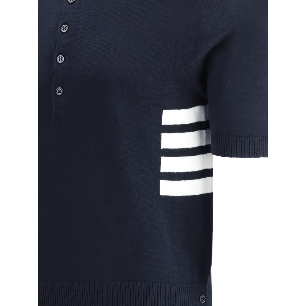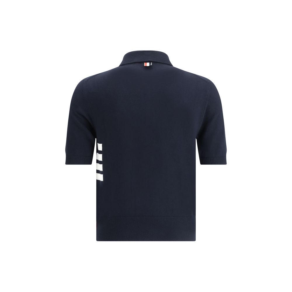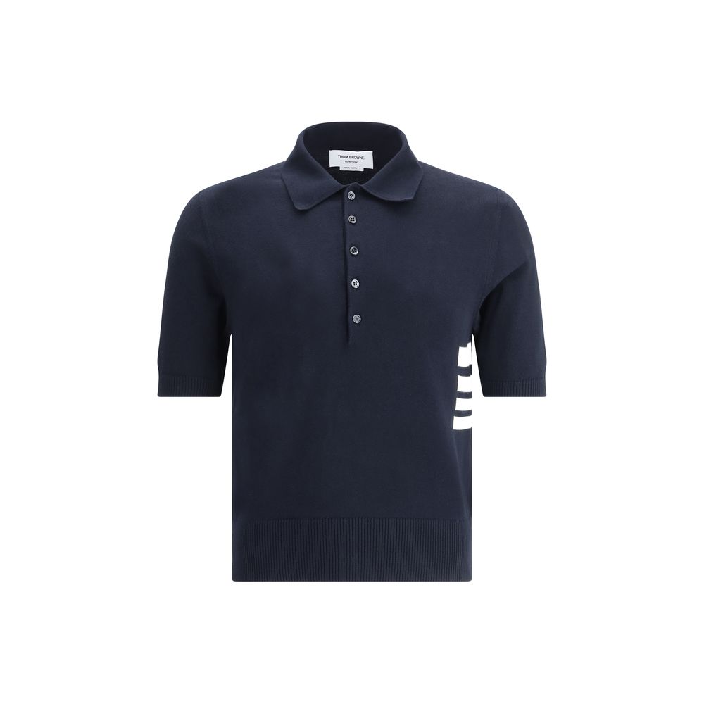 Cotton Polo Shirt by Thom Browne, classic ribbed collar, tone-on-tone front buttons, iconic contrasting horizontal bands on side panel, adjustable side slits with buttons, regular fit.