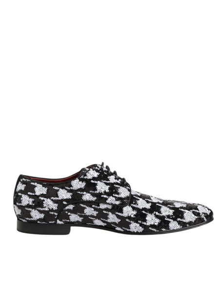 Dolce & Gabbana Dress Black White Sequined Lace Up Derby Shoes