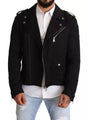 Dolce & Gabbana Black Brocade Full Zip Biker Coat Jacket