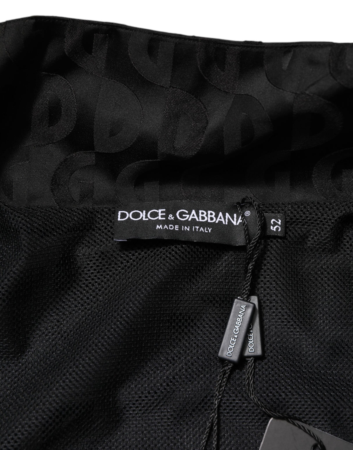 Dolce & Gabbana Black Jacquard Men Full Zip Bomber Sweater