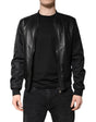 Dolce & Gabbana Black Lambskin Leather Biker Full Zip Jacket