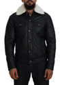 Dolce & Gabbana Black Lamb Leather Collared Men Coat Jacket