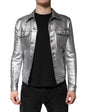 Dolce & Gabbana Silver Cotton Button Down Denim Biker Jacket