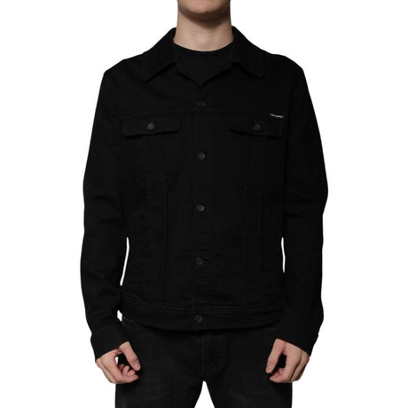 Dolce & Gabbana Black Cotton Denim Stretch Button Up Jacket
