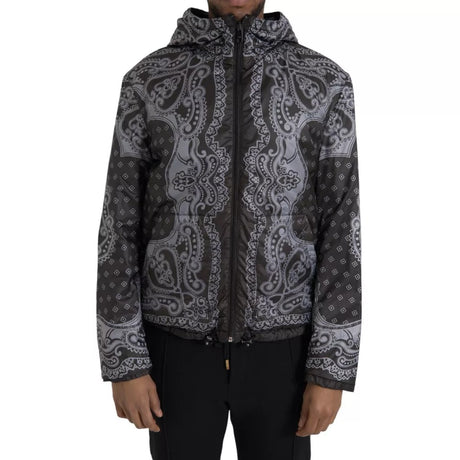 Dolce & Gabbana Gray Bandana Hooded Full Zip Bomber Jacket