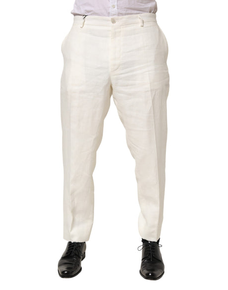 Dolce & Gabbana White Linen Formal Dress Men Trouser Pants
