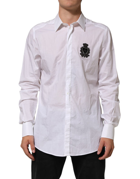Dolce & Gabbana White Cotton GOLD DGPatch Formal Dress Shirt