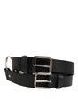 Dolce & Gabbana Black Double Strap Leather Silver Buckle Belt