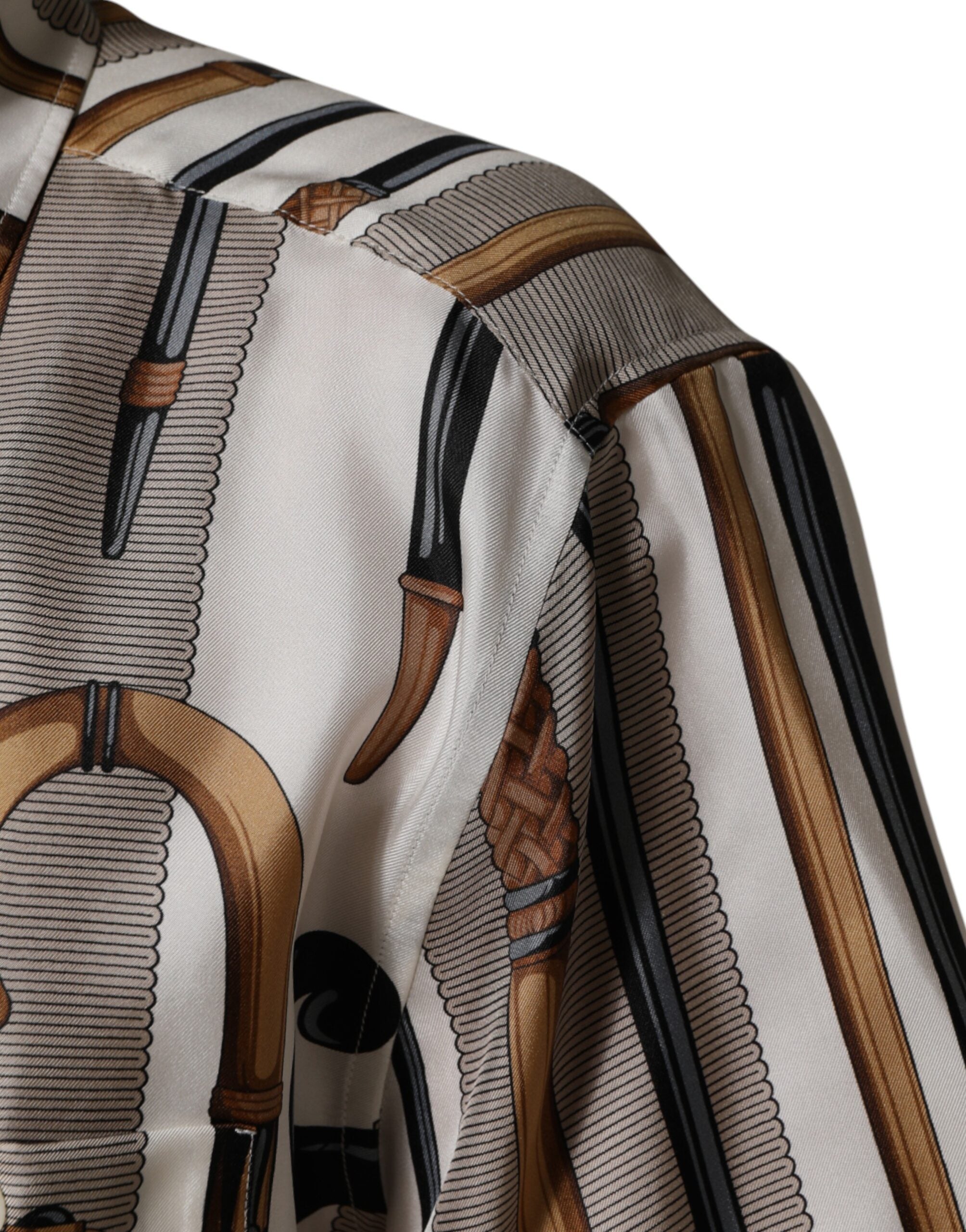 Dolce & Gabbana Multicolor Walking Stick Print Men Shirt