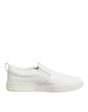 slip-on sneakers, crafted from smooth white leather for a polished yet casual look. Featuring a low-top silhouette, elastic side panels, and a comfortable rubber sole, they offer effortless style and all-day wearability.