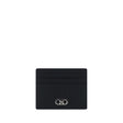 Calfskin Card Holder by Ferragamo, card slots on front and back, iconic Gancini plaque applied in contrast on front, two-tone design.