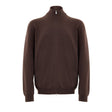 Gran Sasso Brown Wool Zip-Up Cardigan Sweater. Classic fit, front zip closure, and ribbed turtleneck.