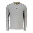 Indulge in the seamless blend of luxury and conscience with Hugo Boss’s crew neck long-sleeved t-shirt. It boasts a sleek applique logo, asserting your style with conviction. Crafted from a sumptuous mix of organic cotton and a touch of elastane, this piece is not only eco-conscious but ensures a perfect fit. Elevate your basics with this sophisticated and versatile gray staple.