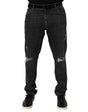 Dolce & Gabbana Black Cotton Slim Fit Distressed Ripped Logo Jeans