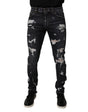 Dolce & Gabbana Black Tattered Cotton Skinny Men Denim Jeans