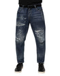 Dolce & Gabbana Blue Cotton Tattered Tapered Men Denim Jeans