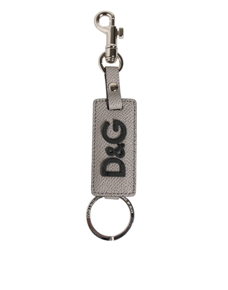 Dolce & Gabbana Gray Leather Logo Metal Ring Keychain Holder Keyring
