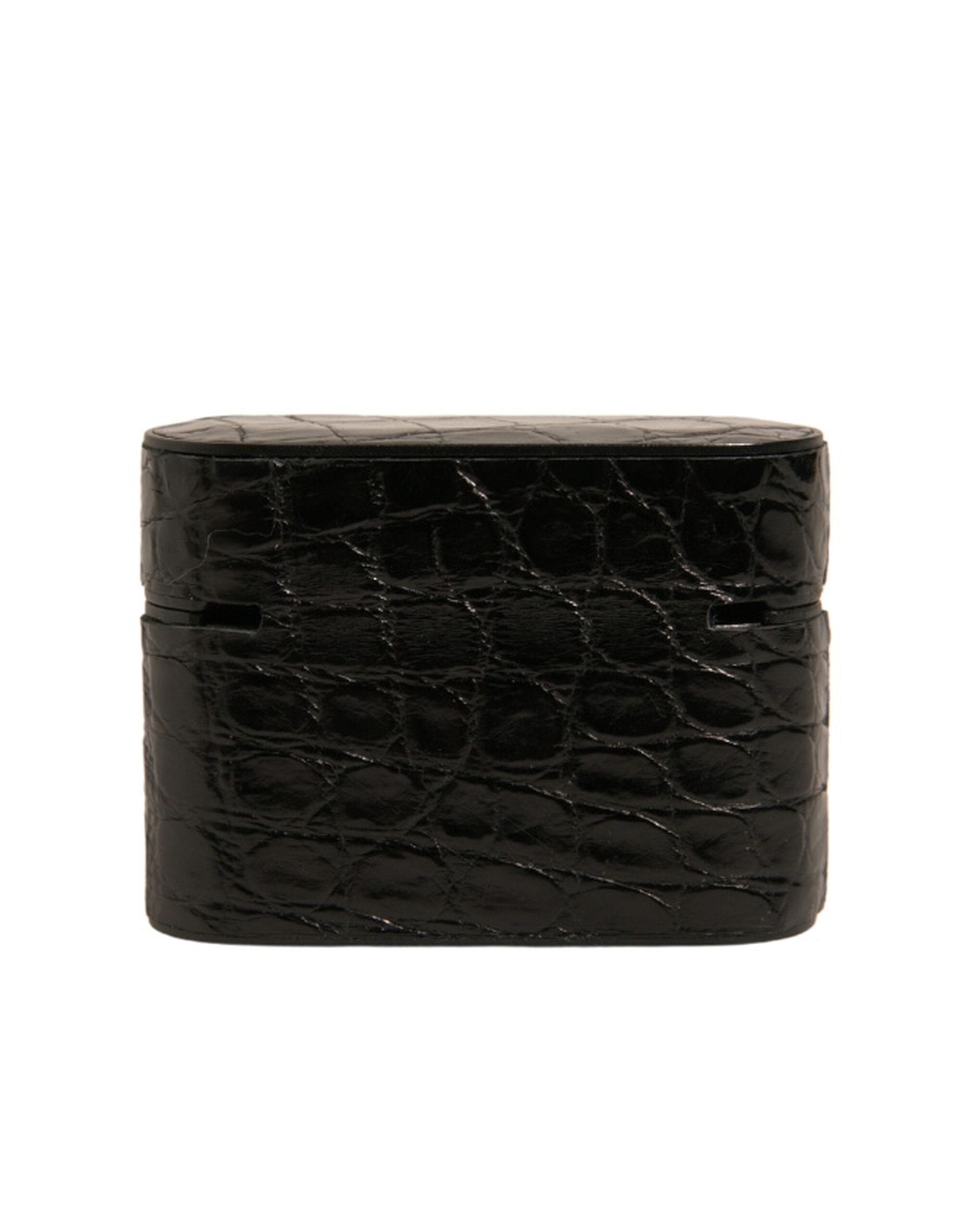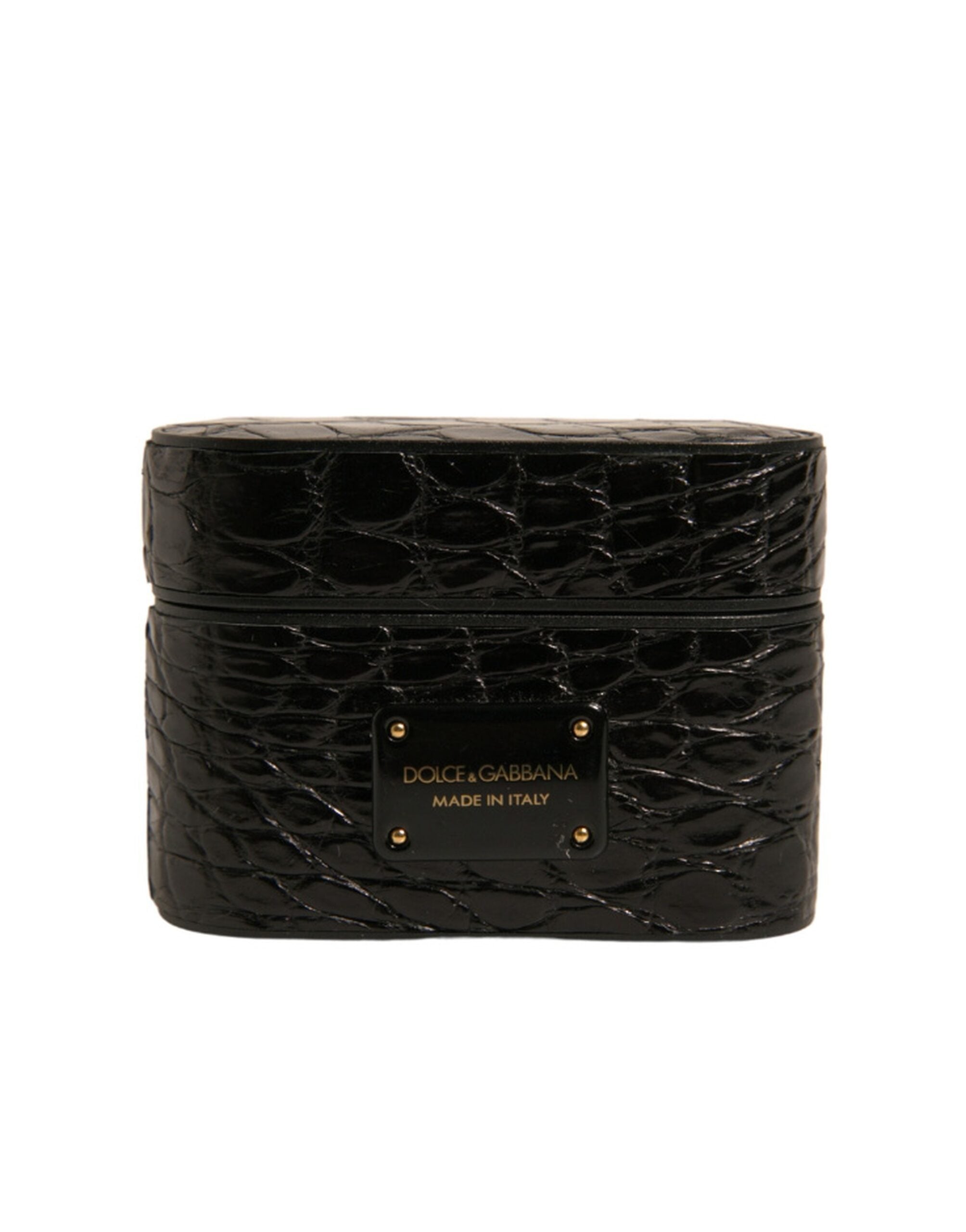 Dolce & Gabbana Black Leather Metal Logo Plaque Holder Airpods Case