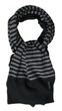 Dolce & Gabbana Black Gray Stripe Wool Neck Wrap Shawl Scarf