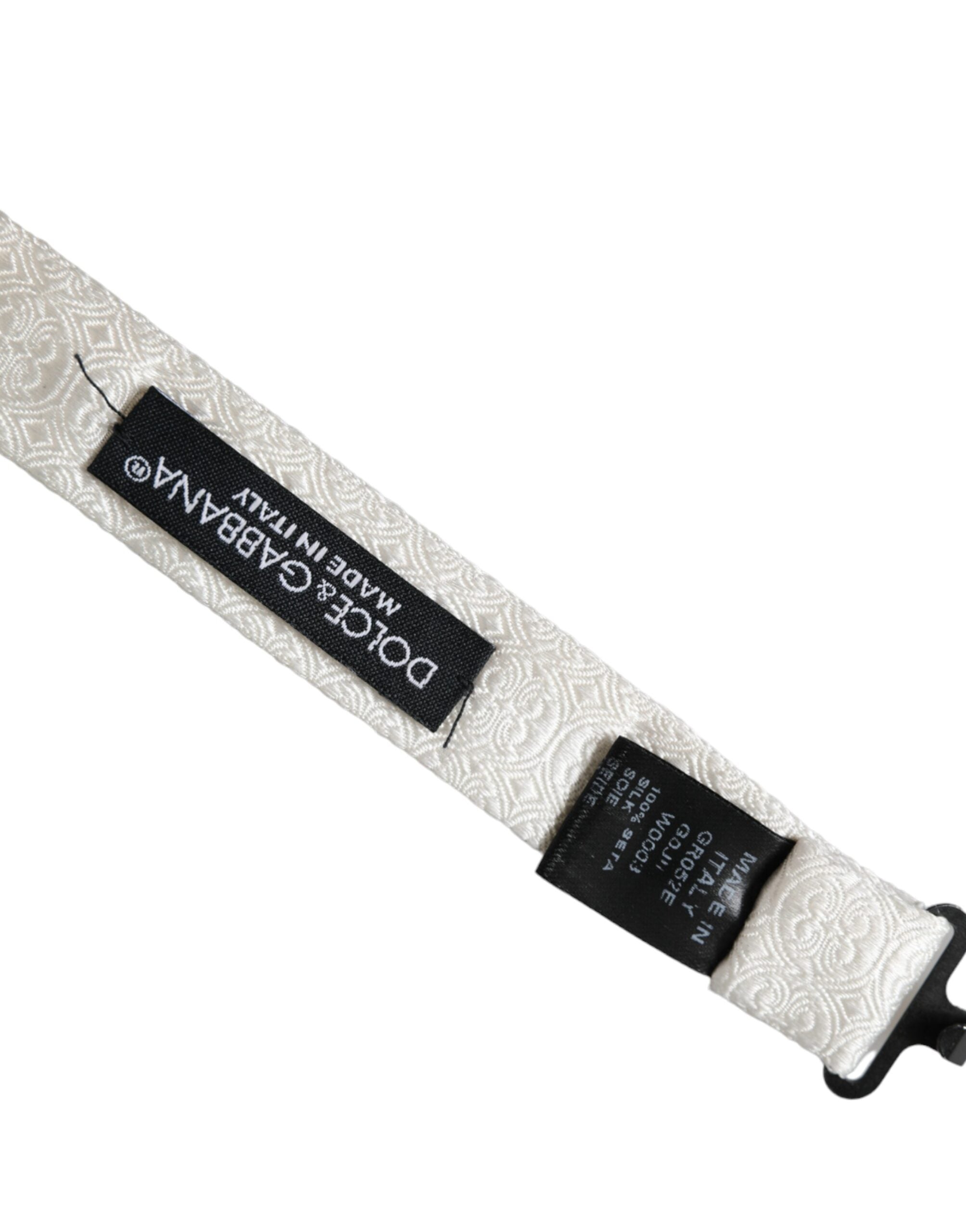 Dolce & Gabbana White Silk Patterned Adjustable Neck Men Papillon Bow Tie