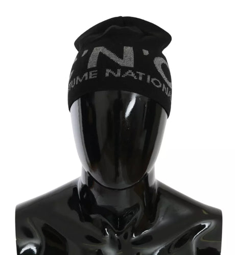 Costume National Black Wool Blend Branded Beanie Hat