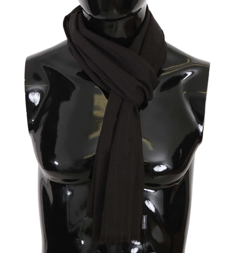 Dolce & Gabbana Dark Gray Virgin Wool Striped Pattern Wrap Scarf
